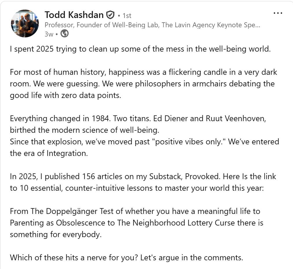 Todd Kashdan had a recent post over on LinkedIn that he framed as a provocation: